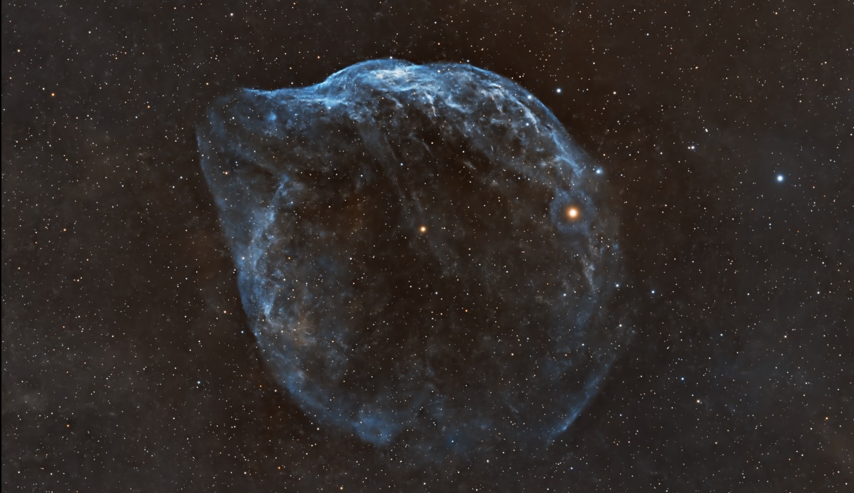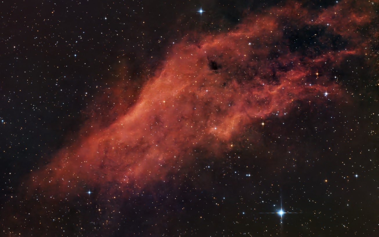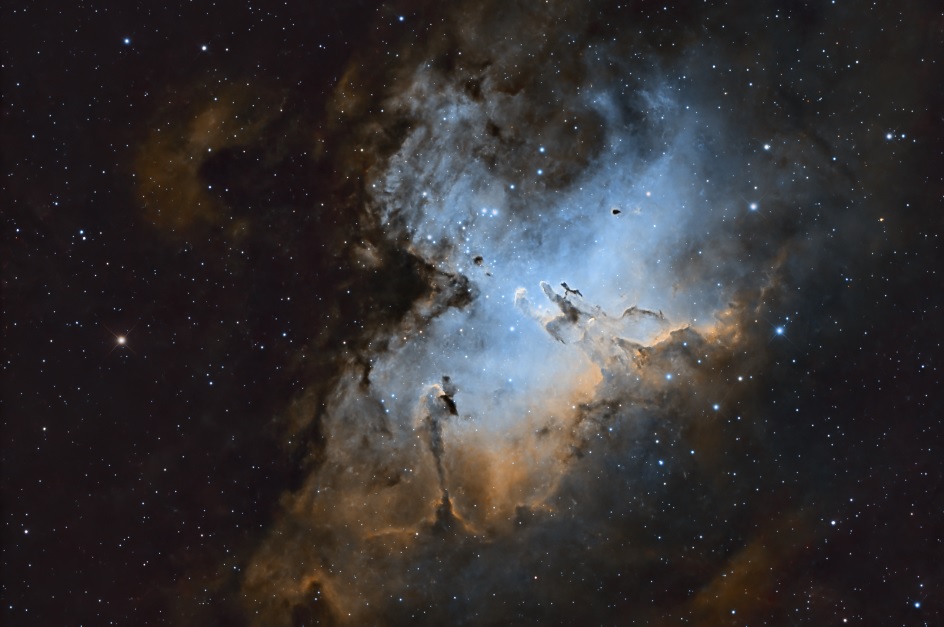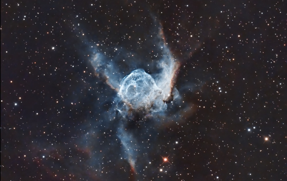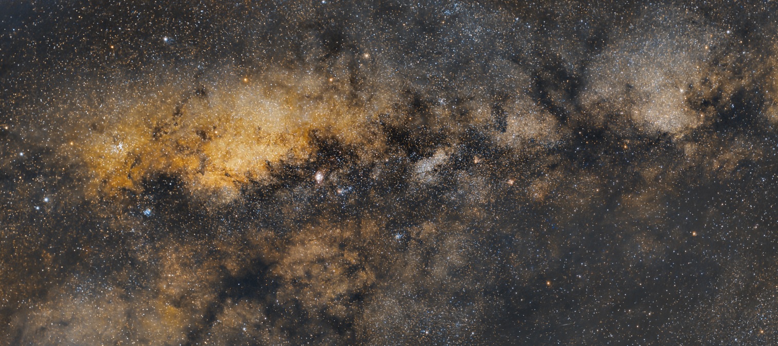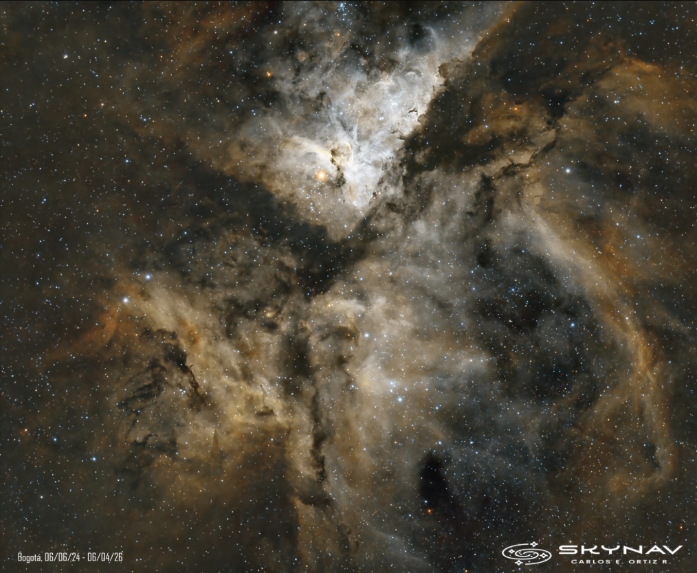 Luminosa nebulosa localizada en el brazo Carina-Sagitario de la Vía Láctea y hacia el polo sur. Fue lograda en dos tomas…